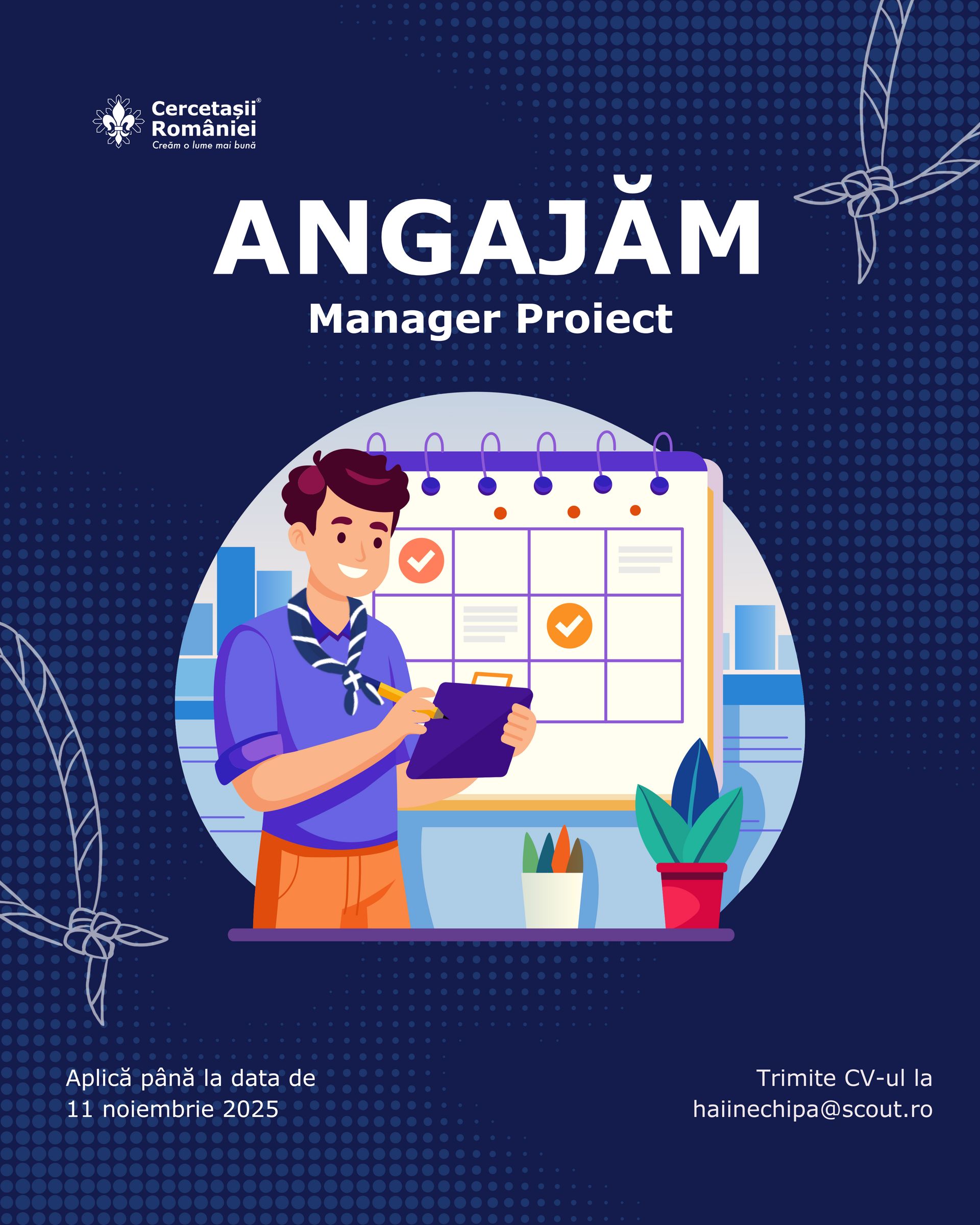Recrutăm Manager Proiect - Dezvoltare de noi grupuri de cercetași [DDL: 11 noiembrie]